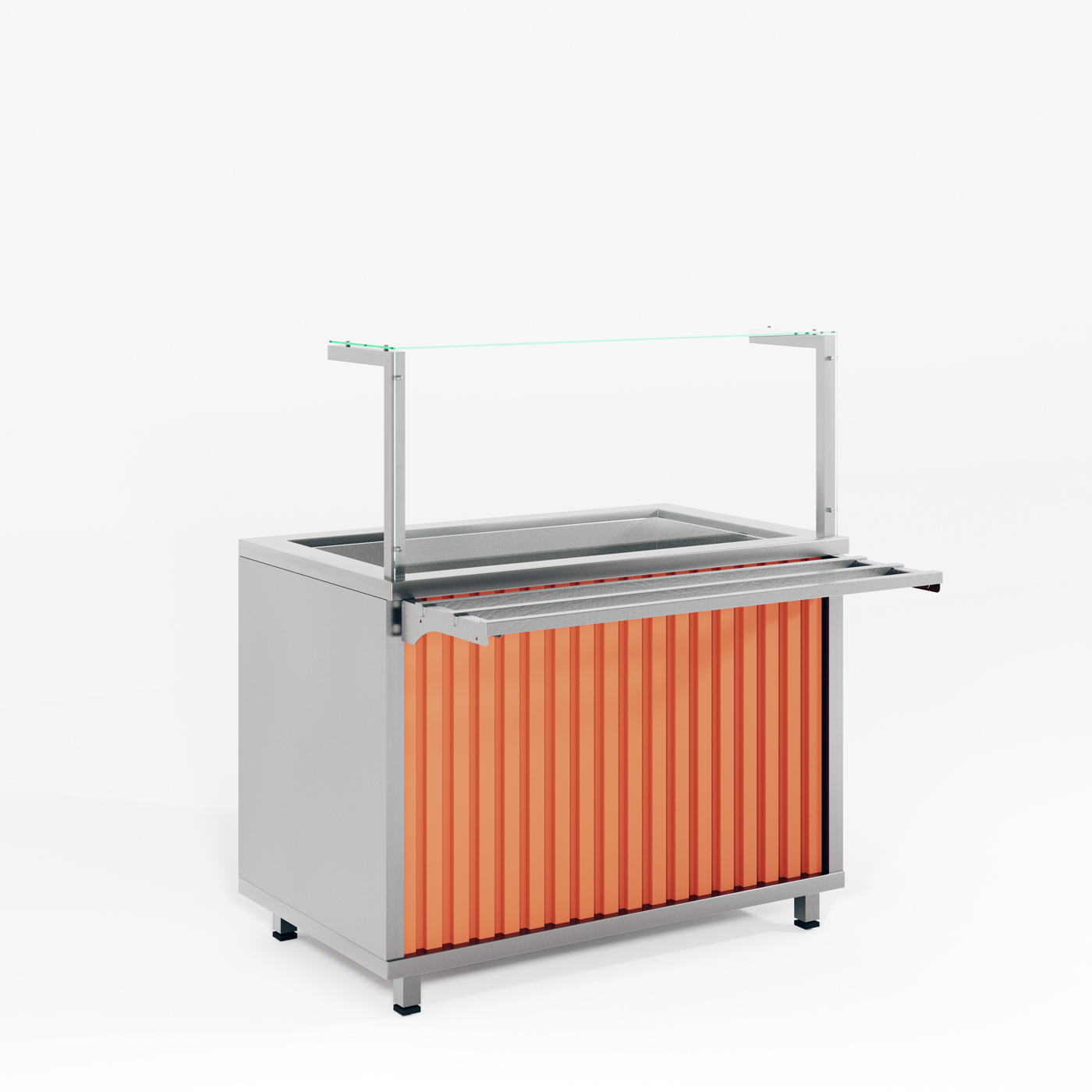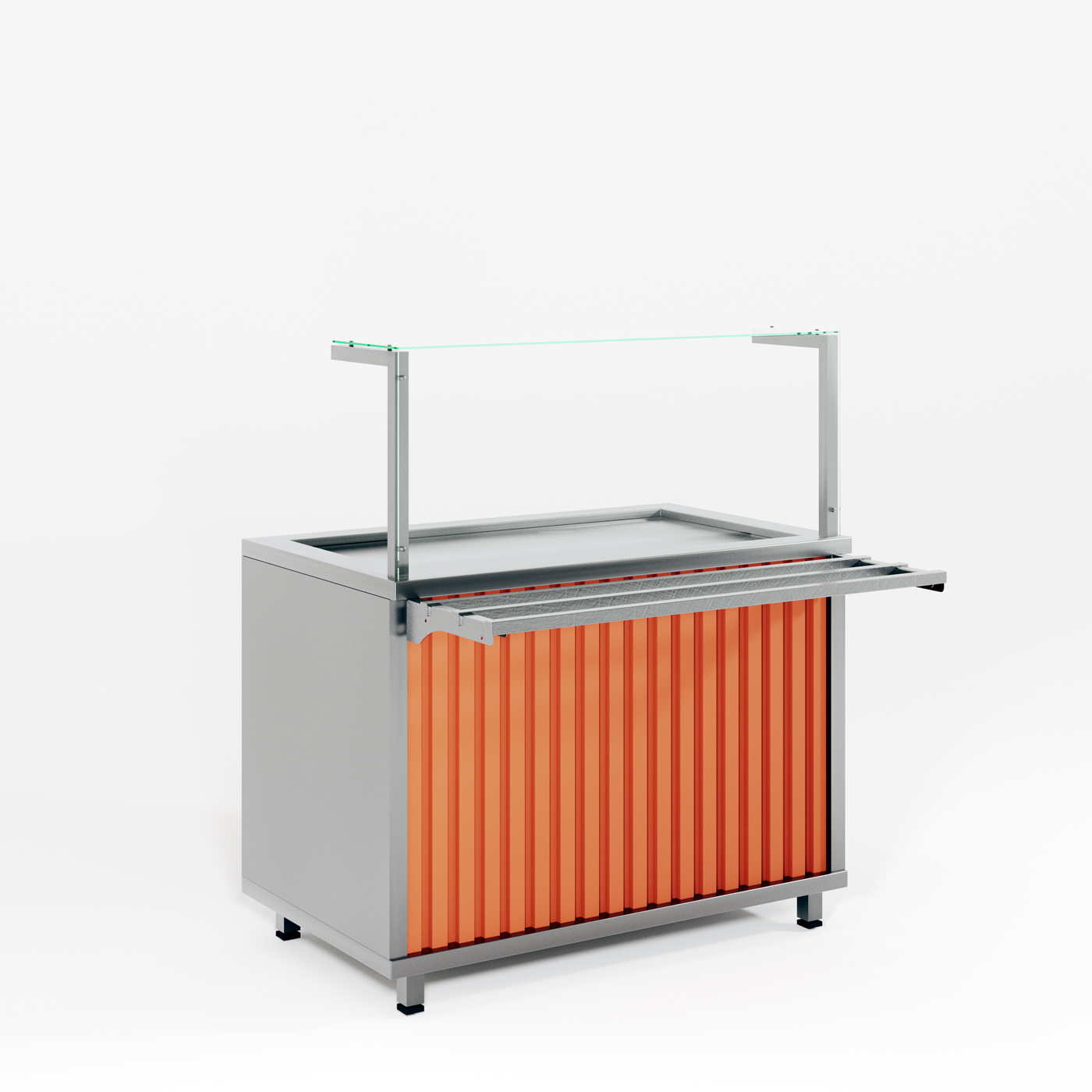 - Защитный экран из закаленного стекла с верхней полкой для выкладки порционных блюд и напитков