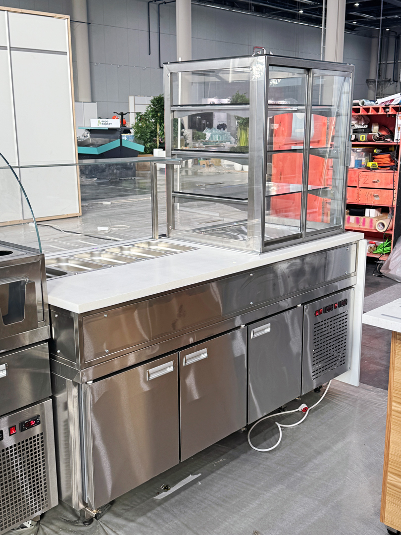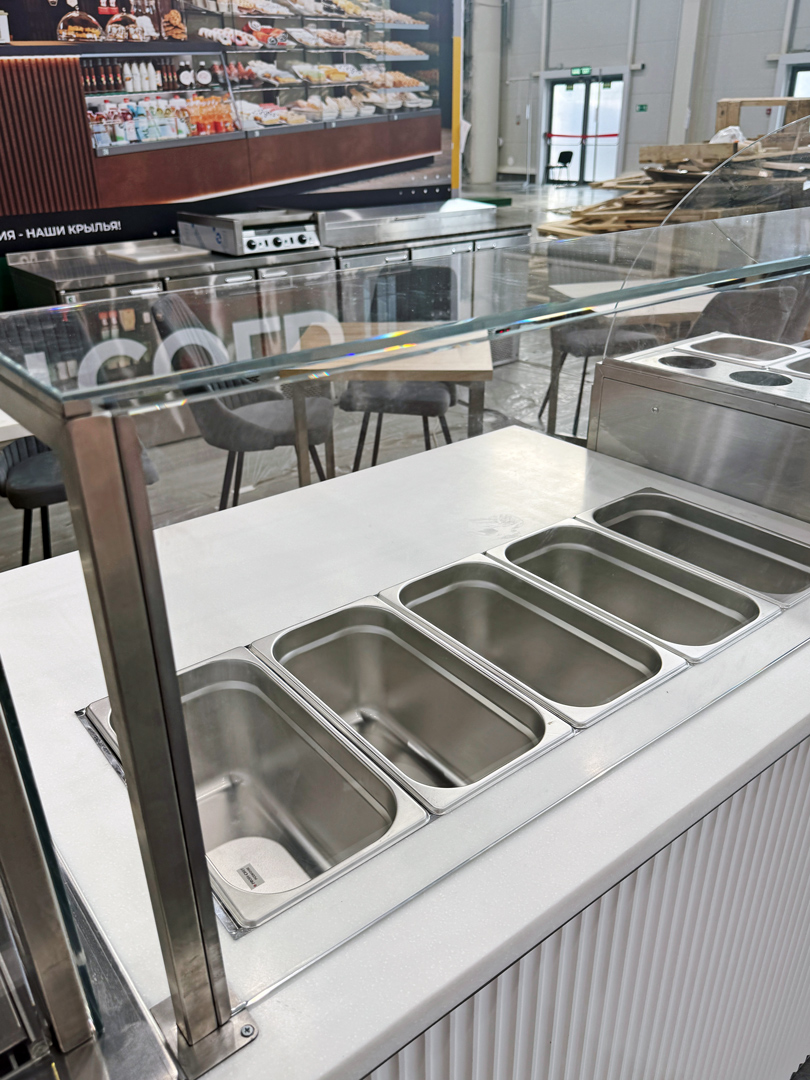- В столешнице встроен мармит под гастроемкости с температурным режимом +30...+80 °C.