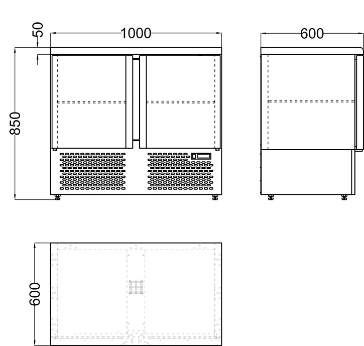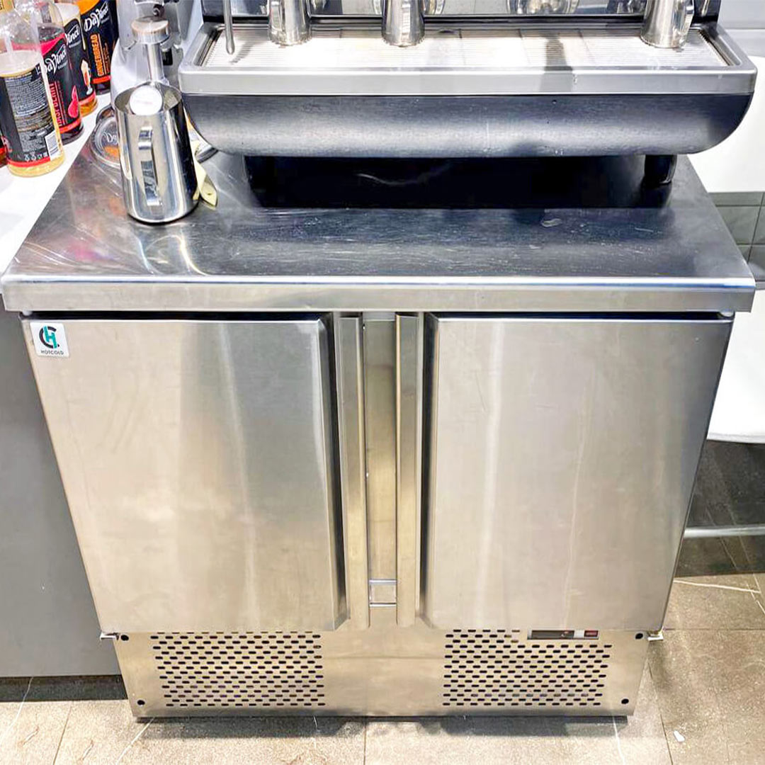 Cтолы морозильные производства Хотколд состоят из низкотемпературной камеры с двумя распашными дверцами и широкой столешницы.