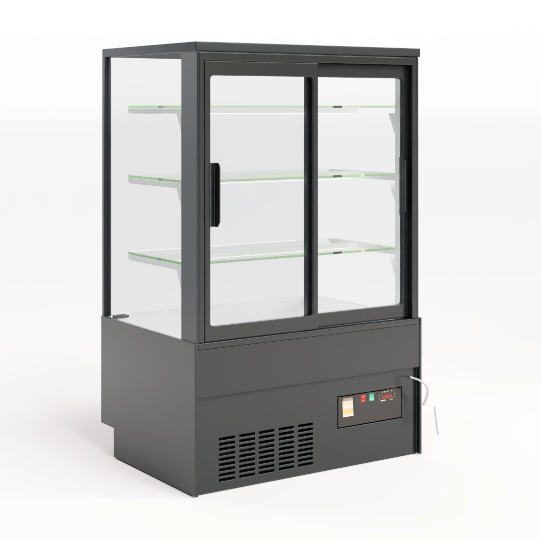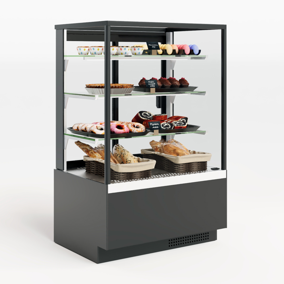 Кондитерская витрина Хотколд 1300-2 - это модернизированная версия бестселлера кубической витрины Canary 1300. Отличительной характеристикой новой модели является полное остекление витрины стеклопакетом. Благодаря стеклопакету, двери предотвращают попадание пыли во внутренний объем витрины, обеспечивается более высокая энергоэффективность, также витрина лучше держит холод при более высокой температуре окружающей среды. Кроме того, к преимуществам новой модели можно отнести стильную черную рамку по периметру кондитерской витрины.