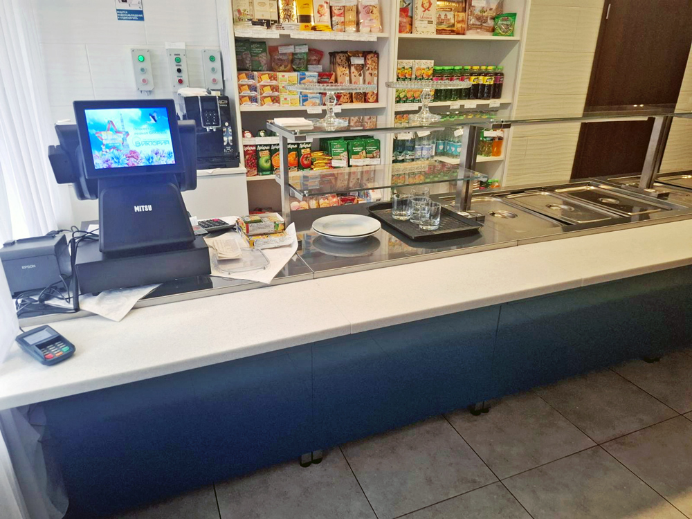 Завершает линию раздачи, обеспечивая удобную зону для расчета гостей. Продуманная эргономика конструкции способствует комфортной работе кассира и быстрому обслуживанию клиентов.