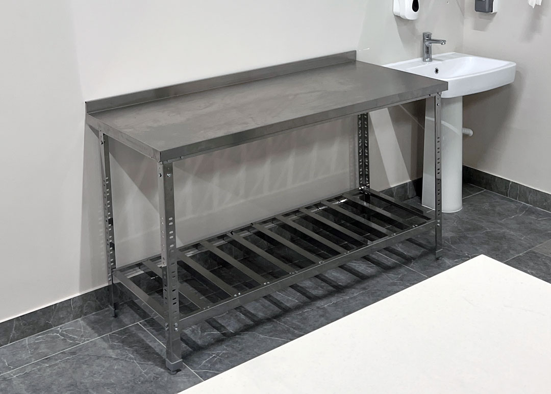 - Стол сборно-разборный с бортом 1500х600х860 полка решётчатая